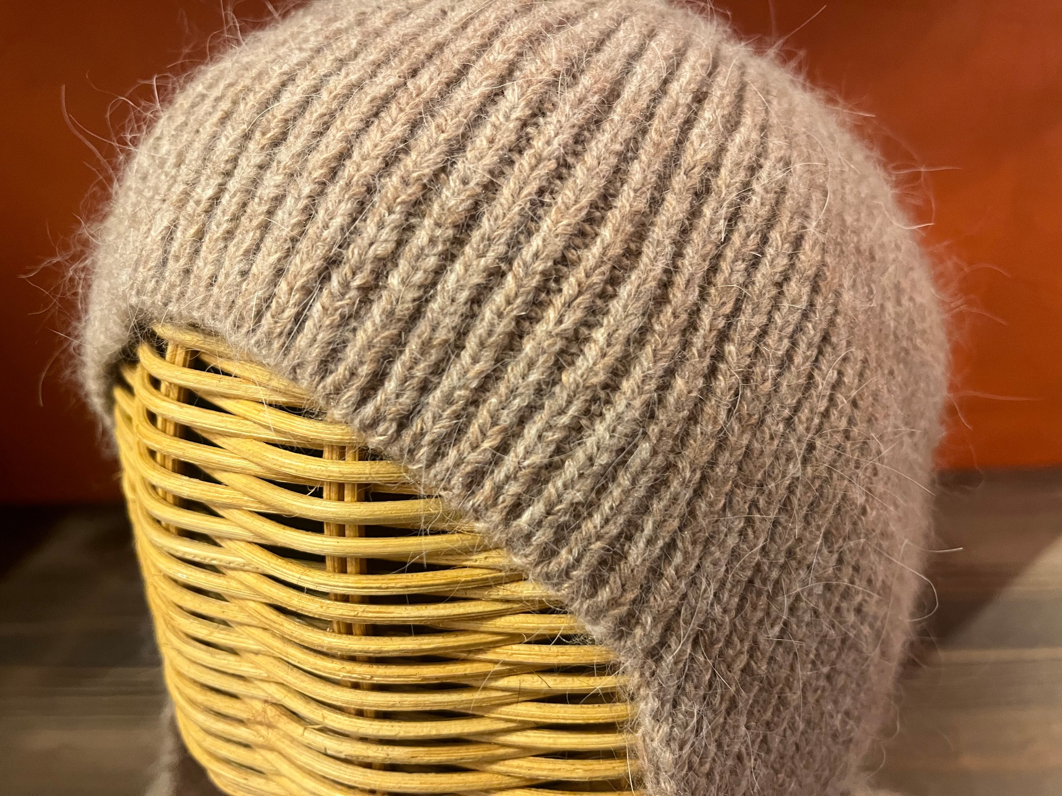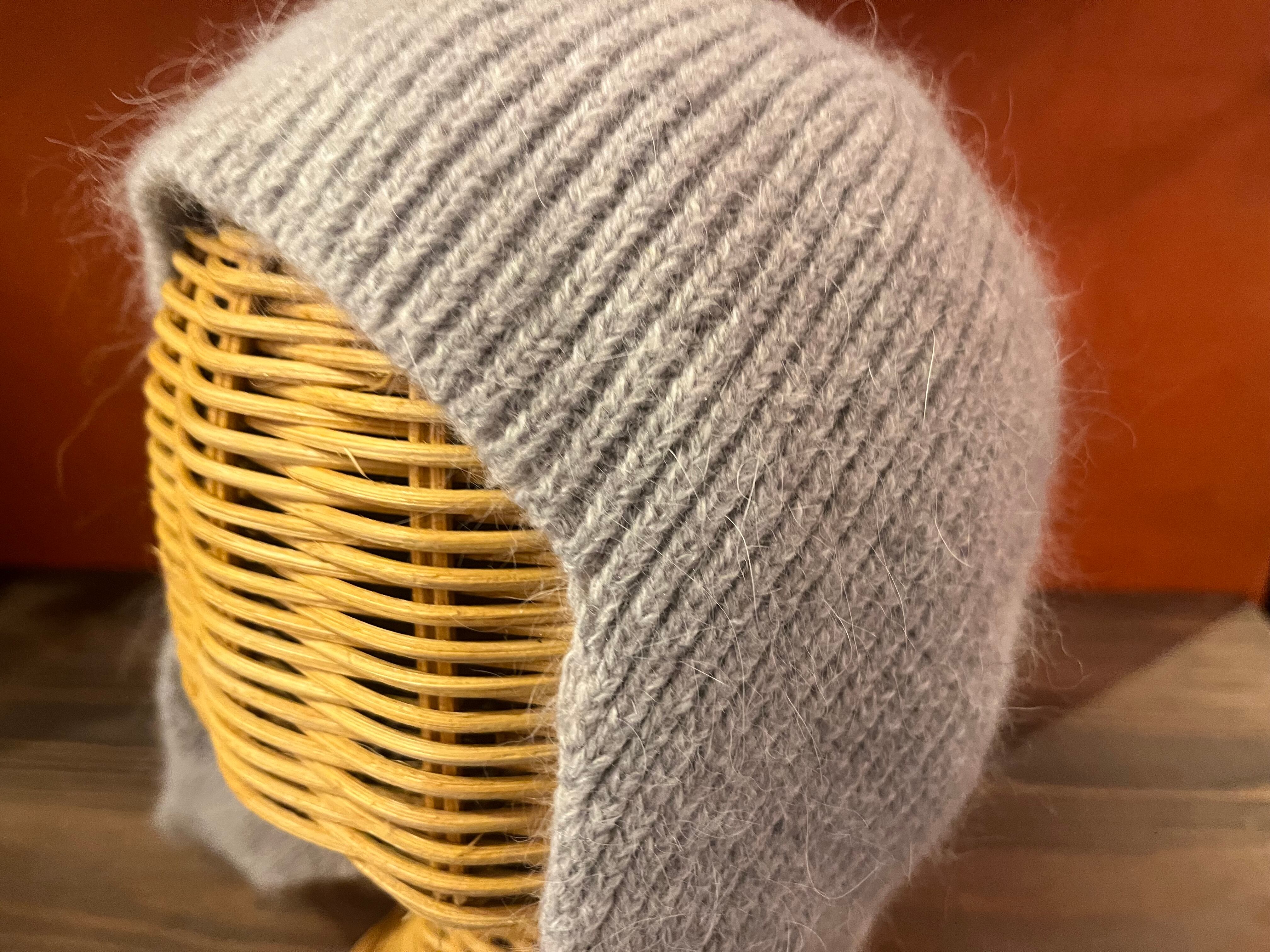 毛足のある糸で編み立て、ふんわりとしたニュアンスを残したデザイン。