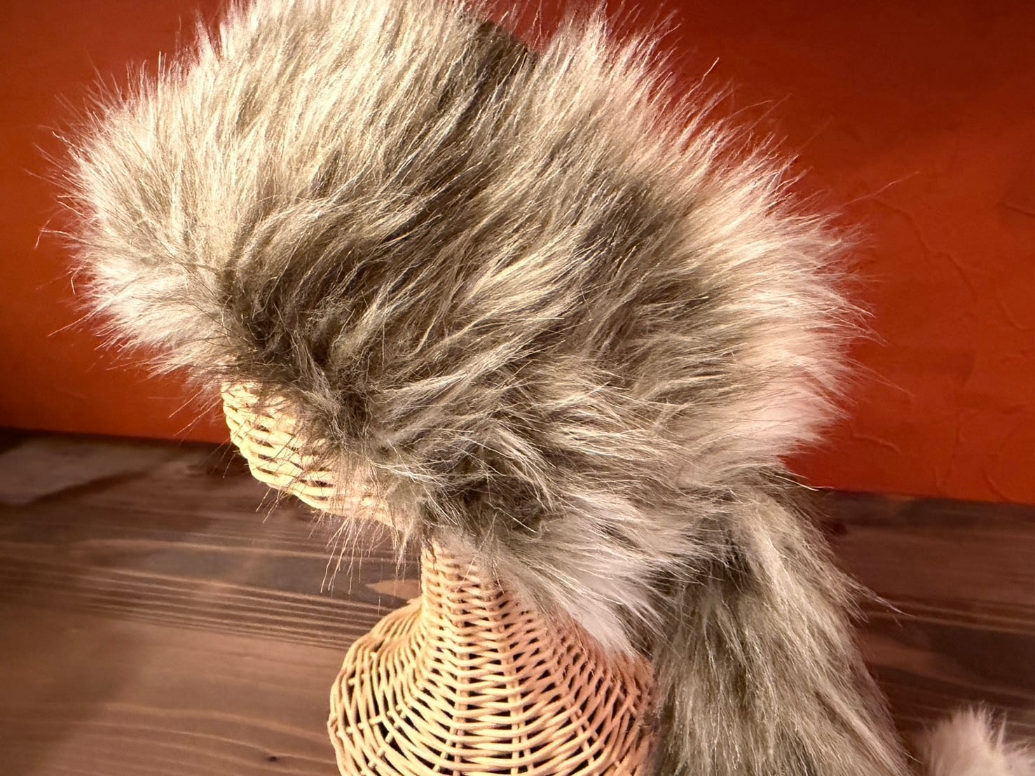 ふわふわのフォックスファーが、まるで冬の風をまとったよう。