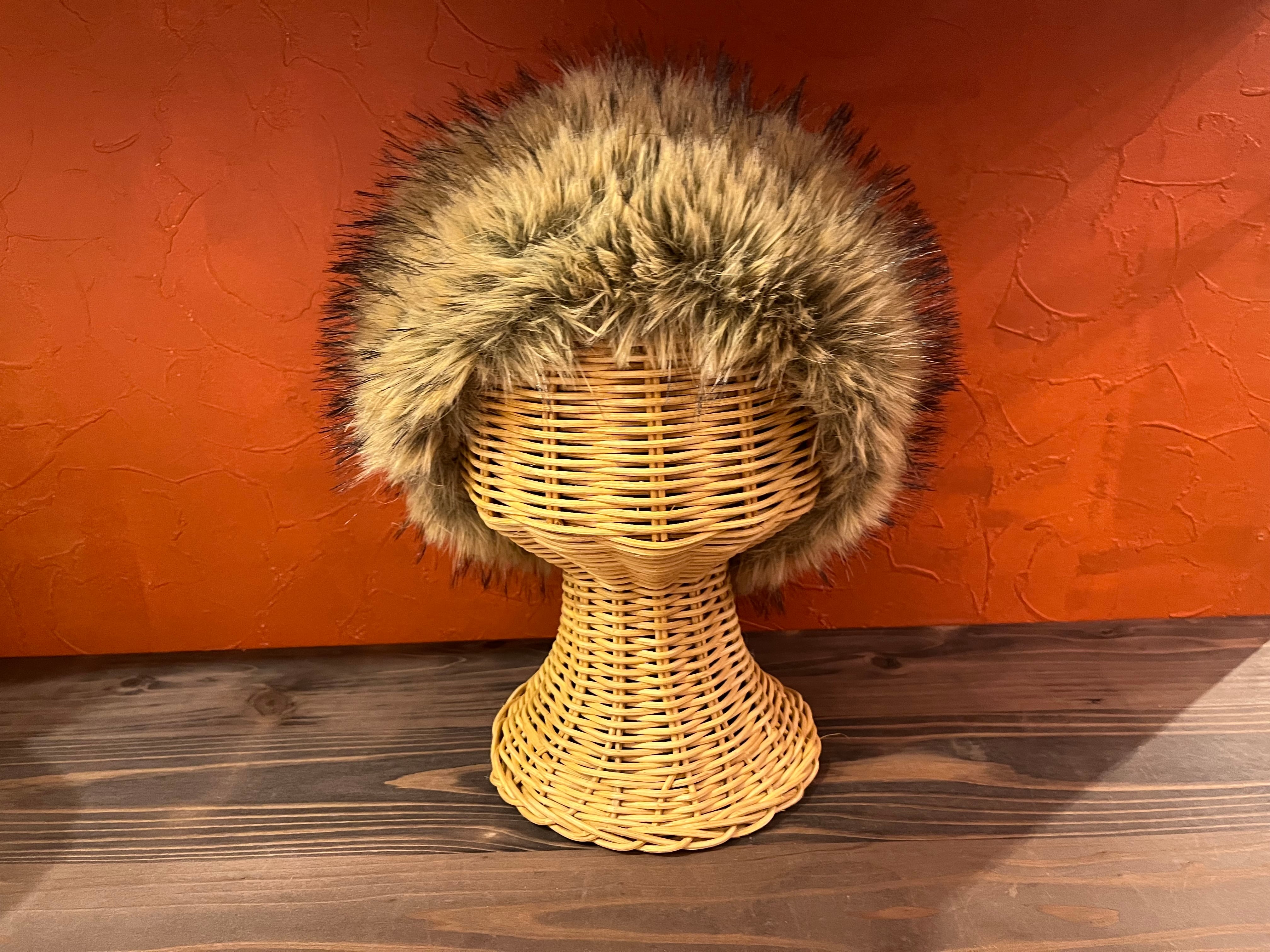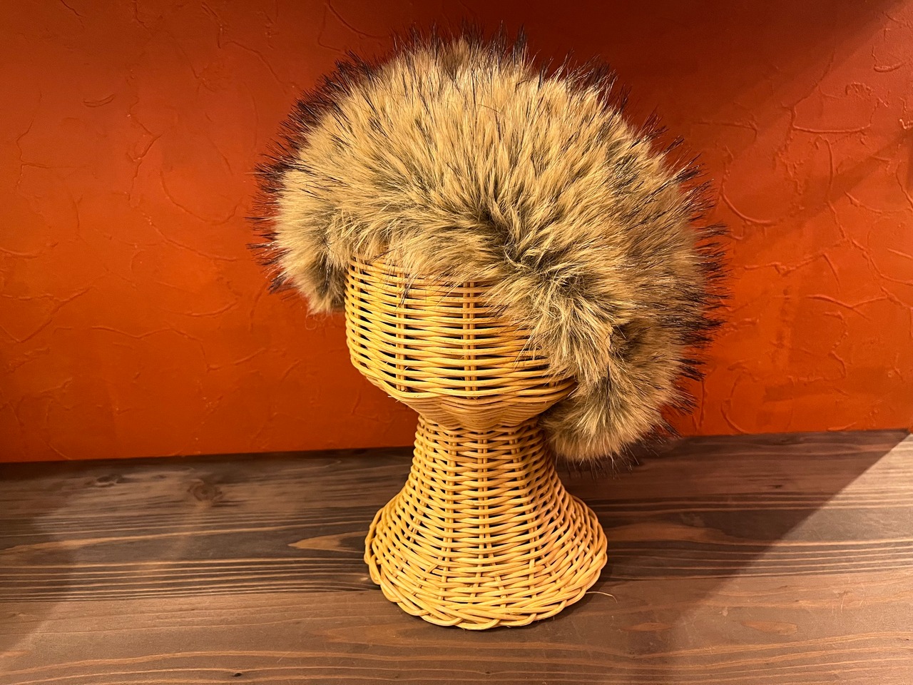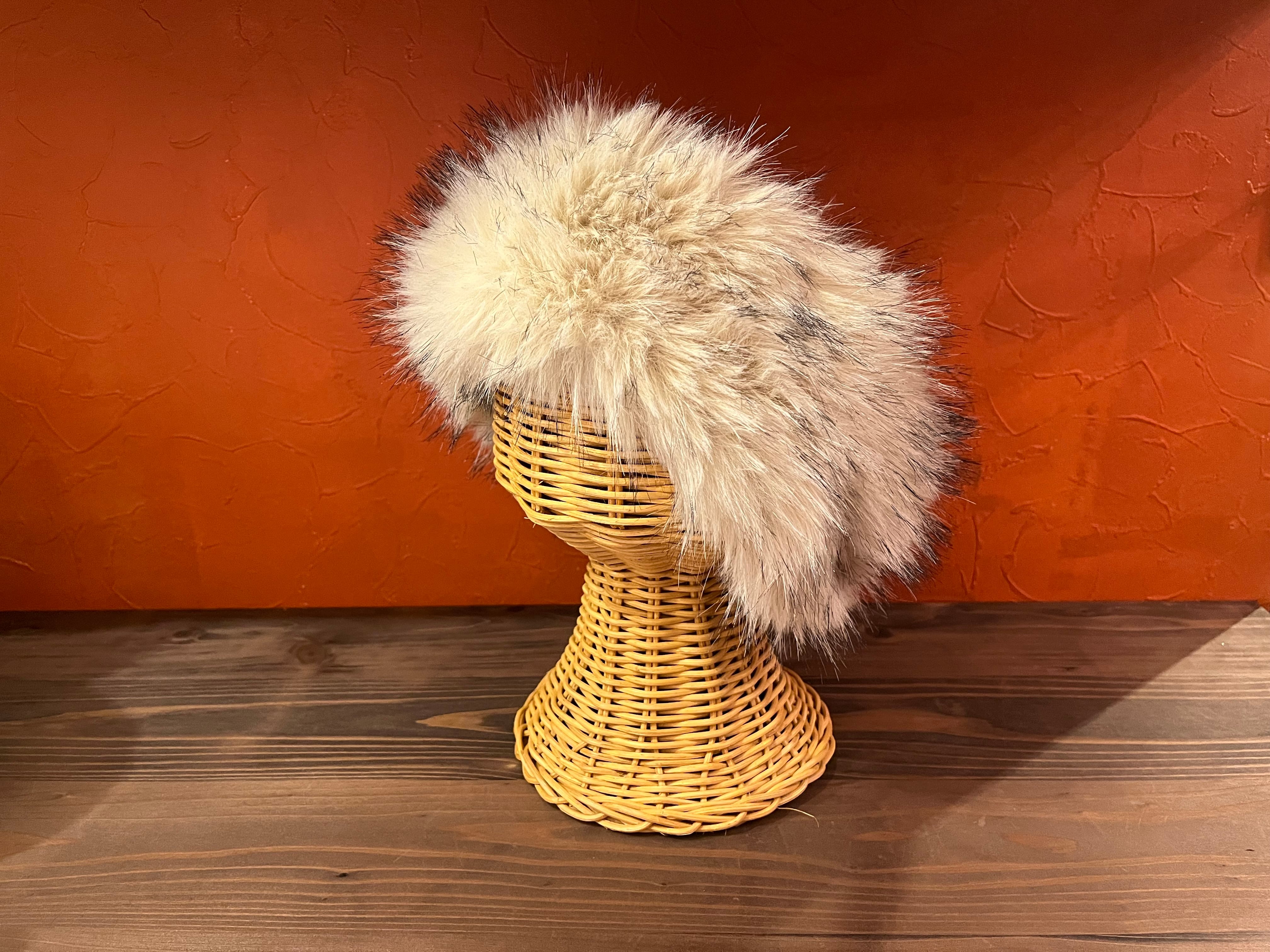まるで北極のフォックスの毛並みをそのまま纏ったような、ふわふわのファーが顔まわりをぐるりと包む “ヘイロー(輪)” デザイン。
