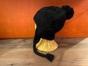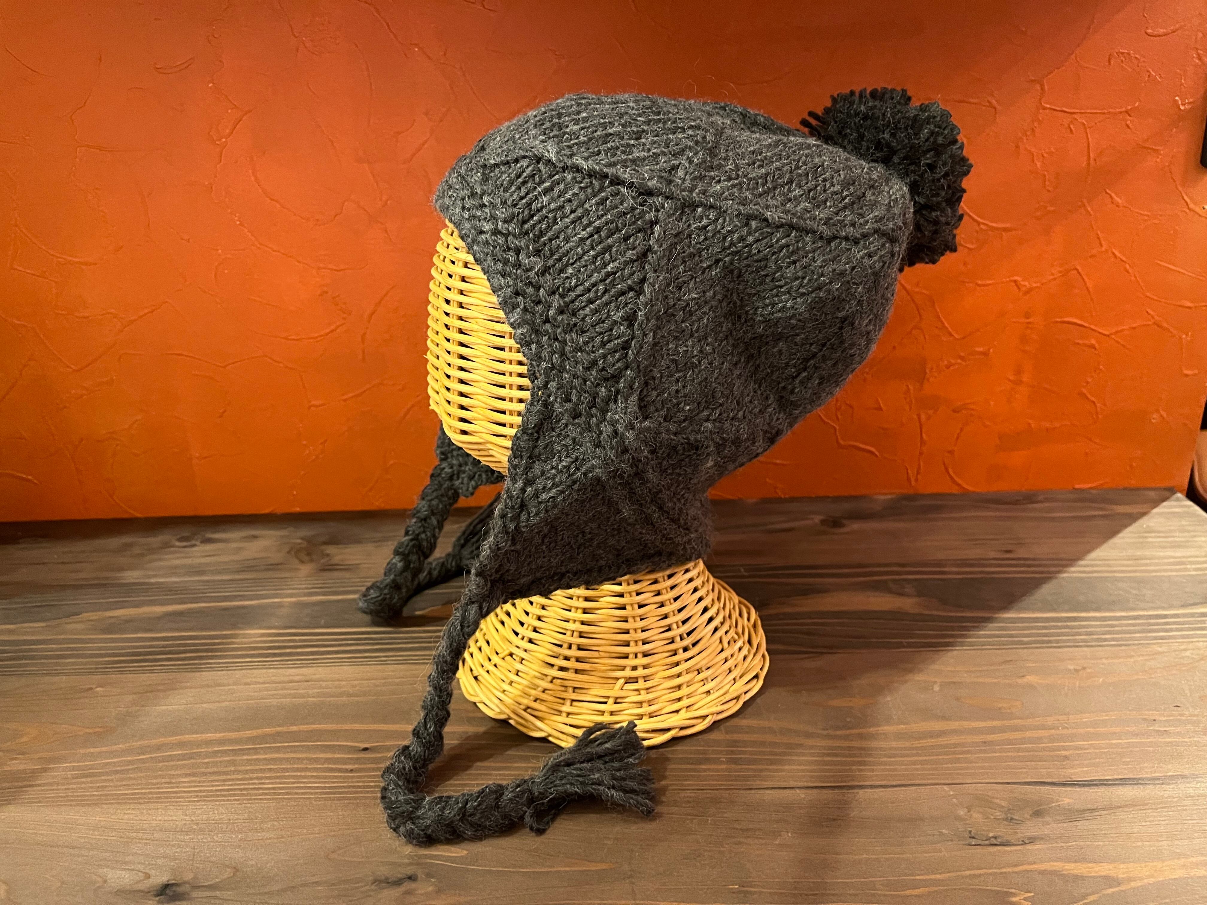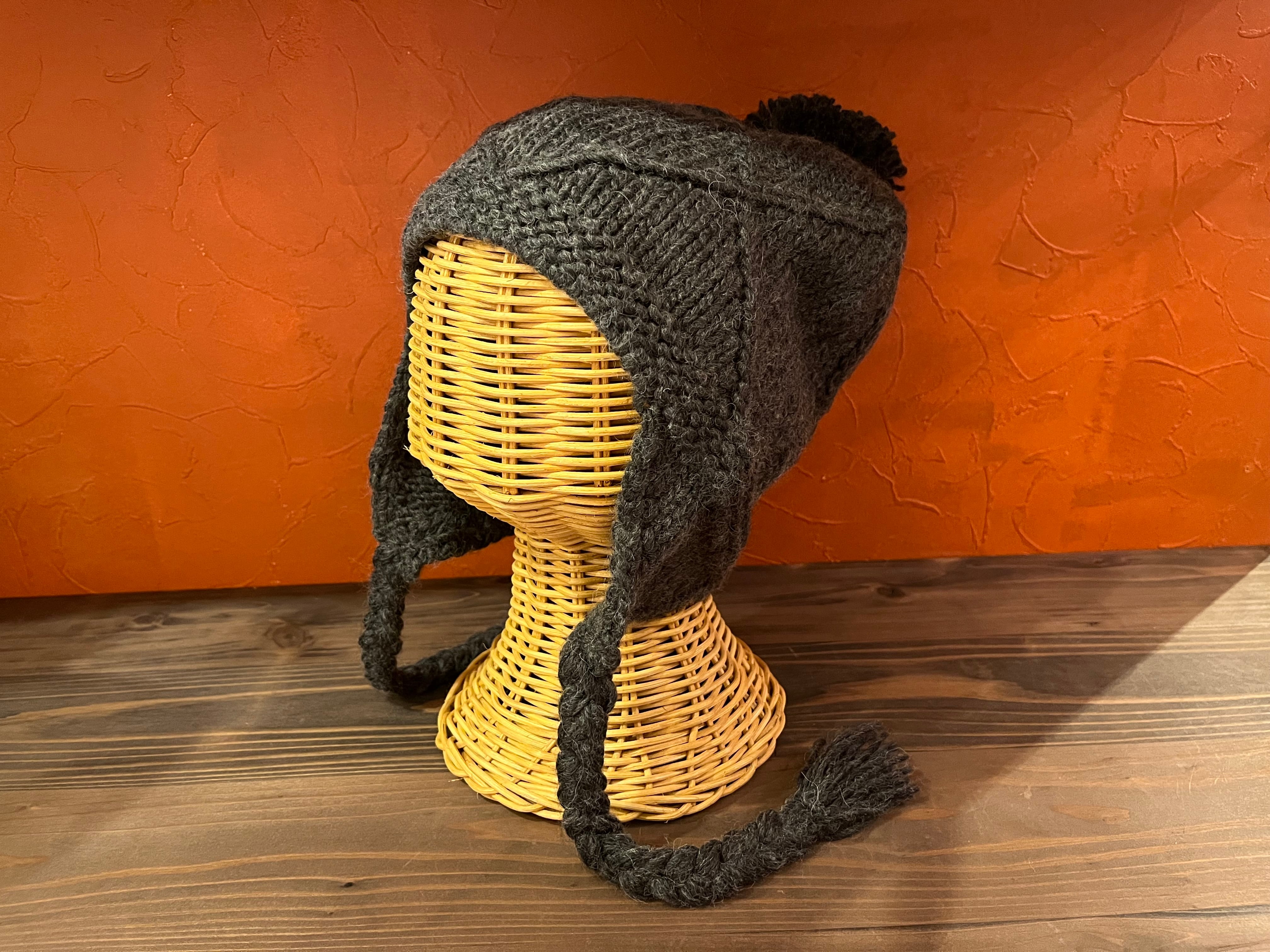ざっくり編みのあたたかみと、ゆるっとした三つ編みの紐が可愛い、冬のためのニットイヤーフラップ。