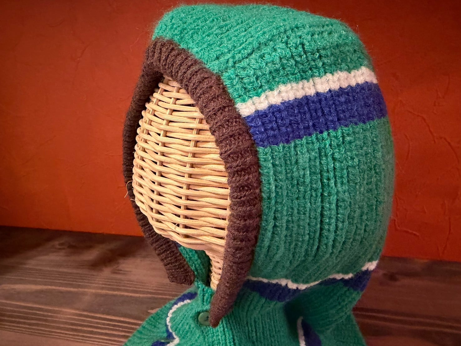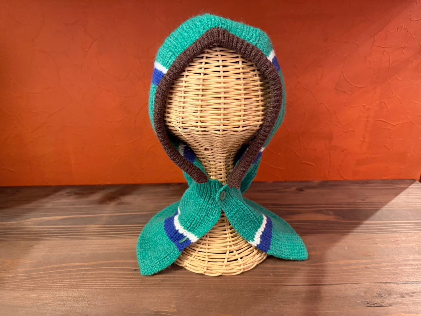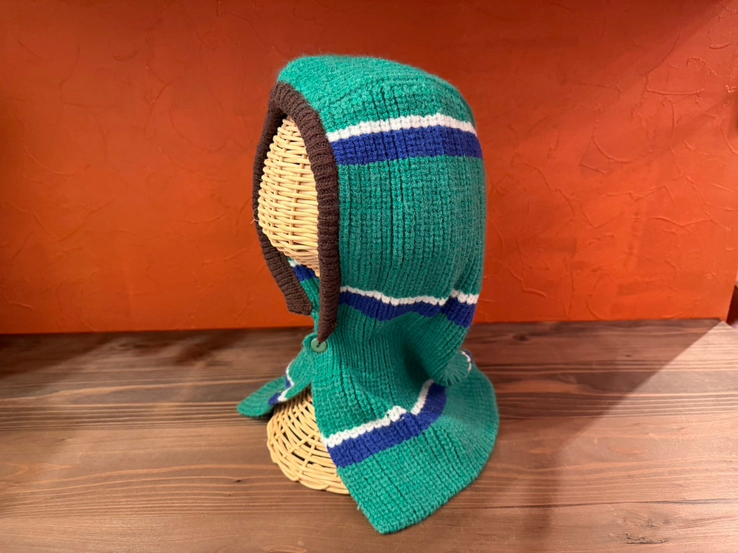 ストライプ柄のニットバラクラバ。