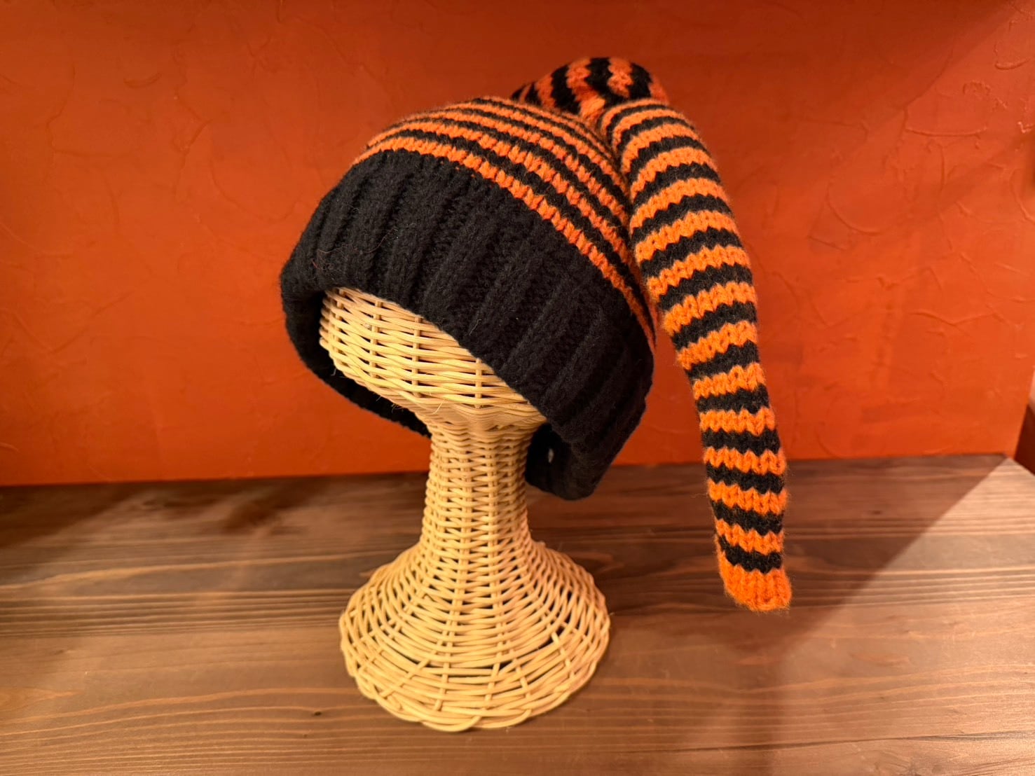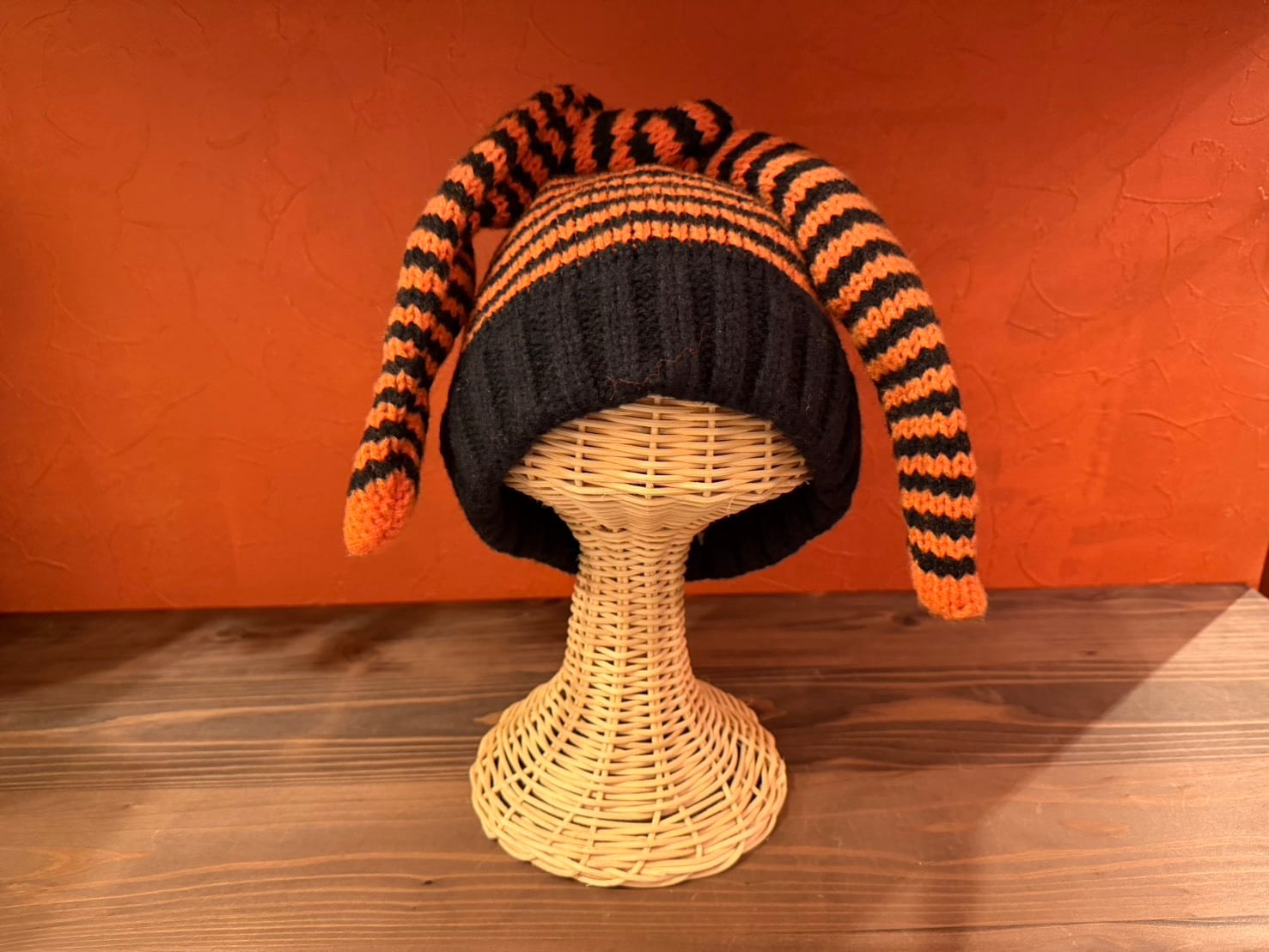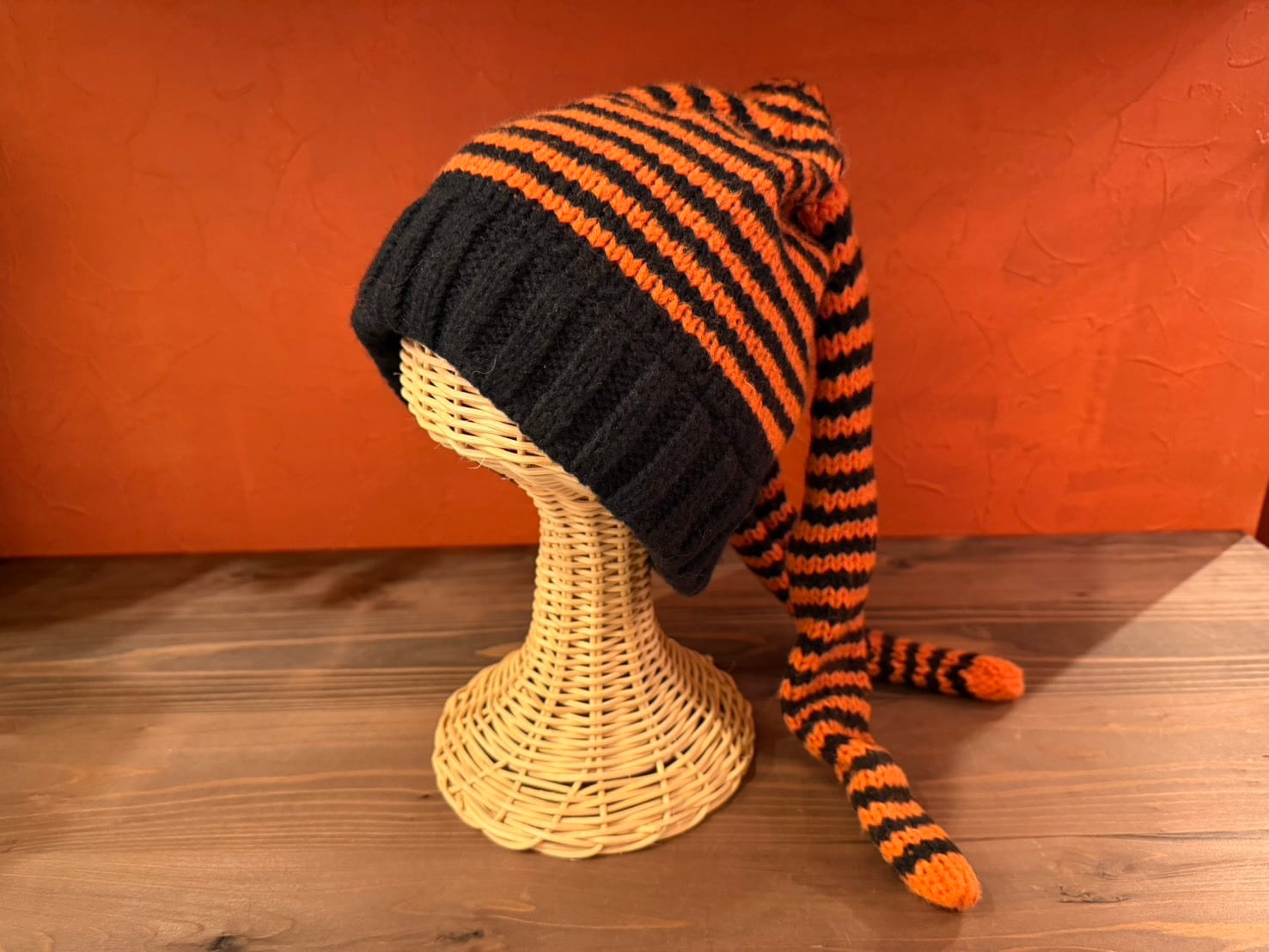 ロングテールデザインのニットビーニー。