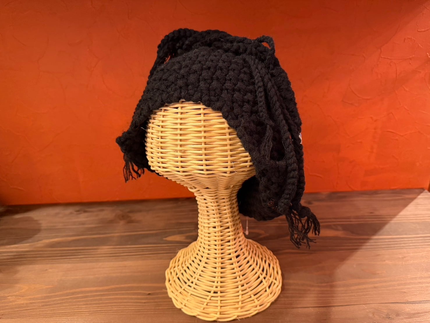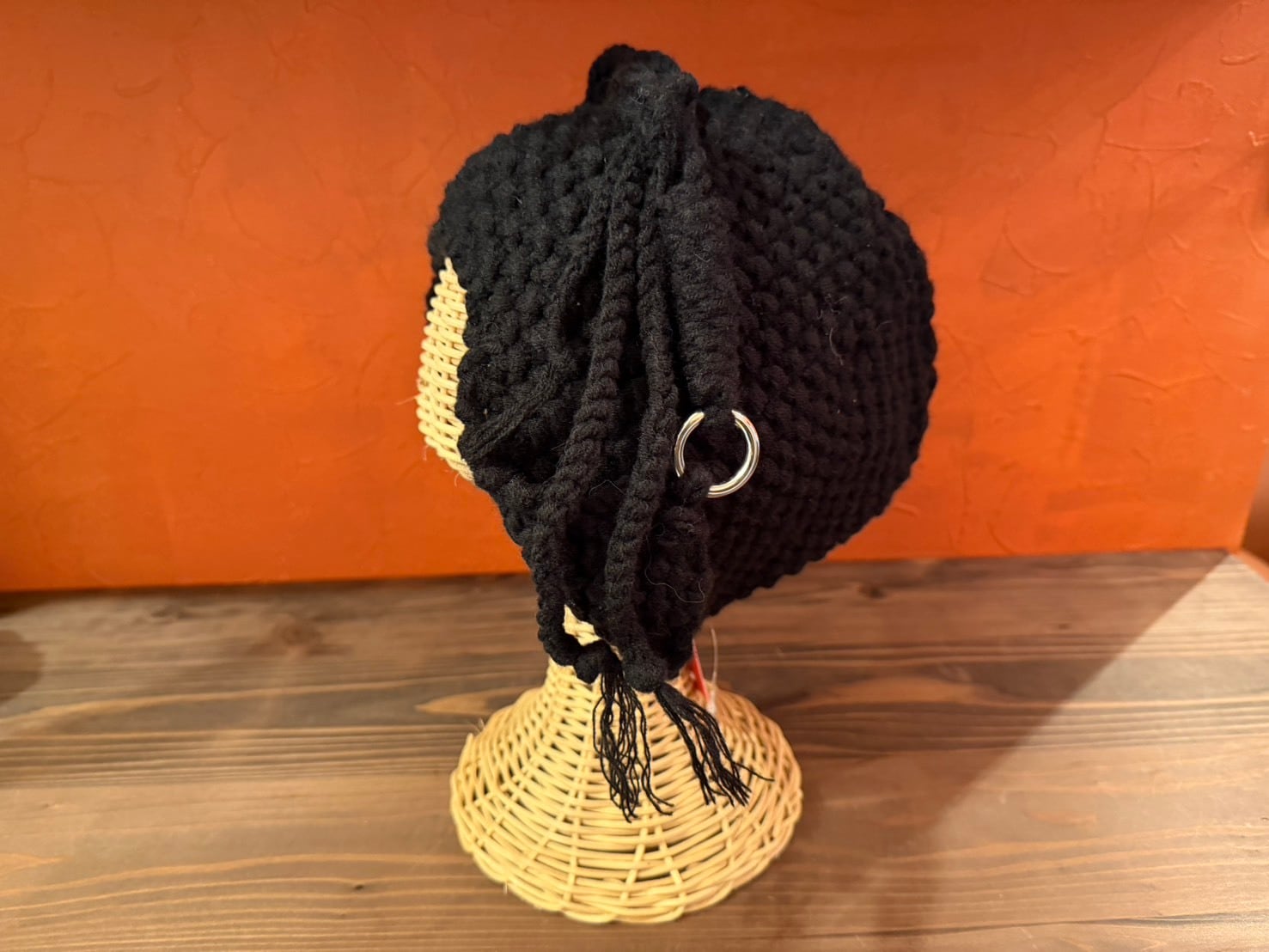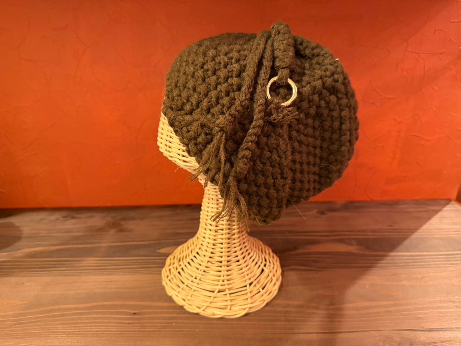 立体感のある編み地が印象的な、ボリュームニットフード。