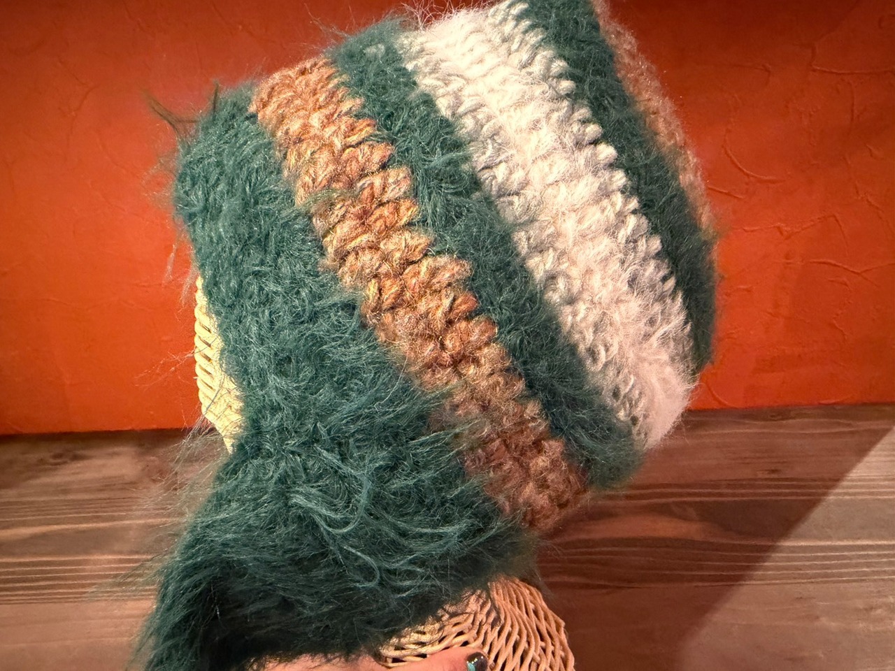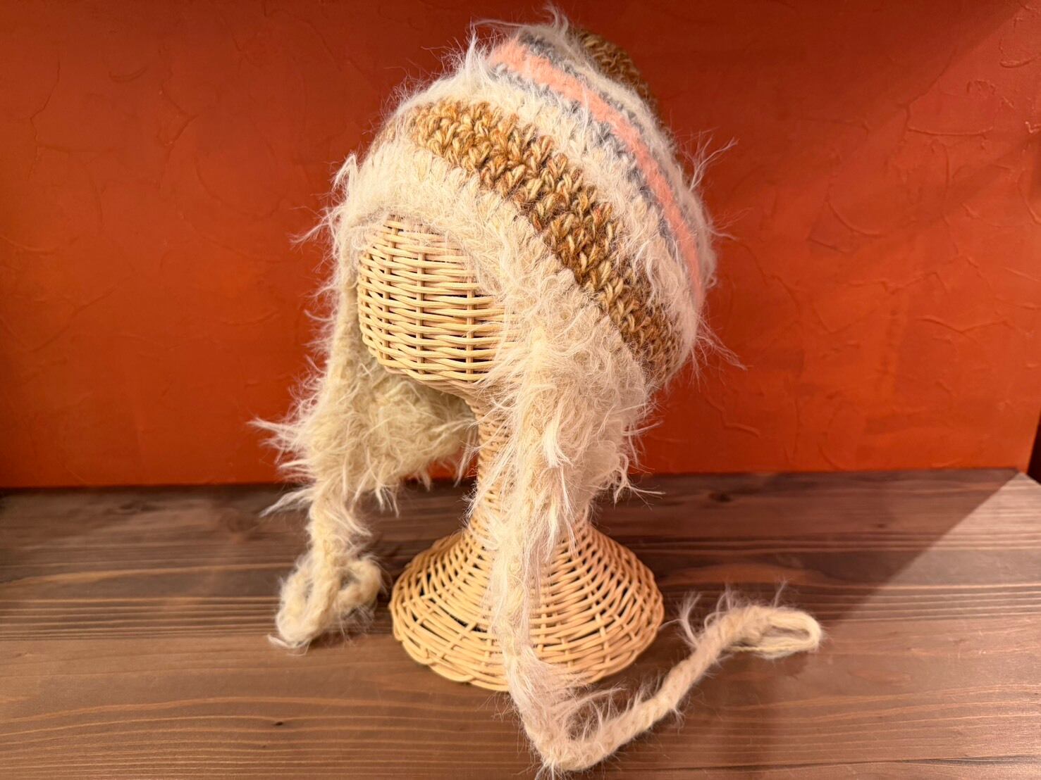 ふわふわ軽やかな耳あて付きニットキャップ。