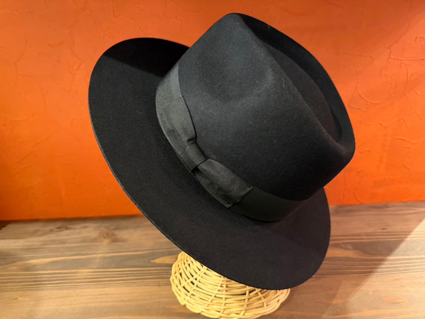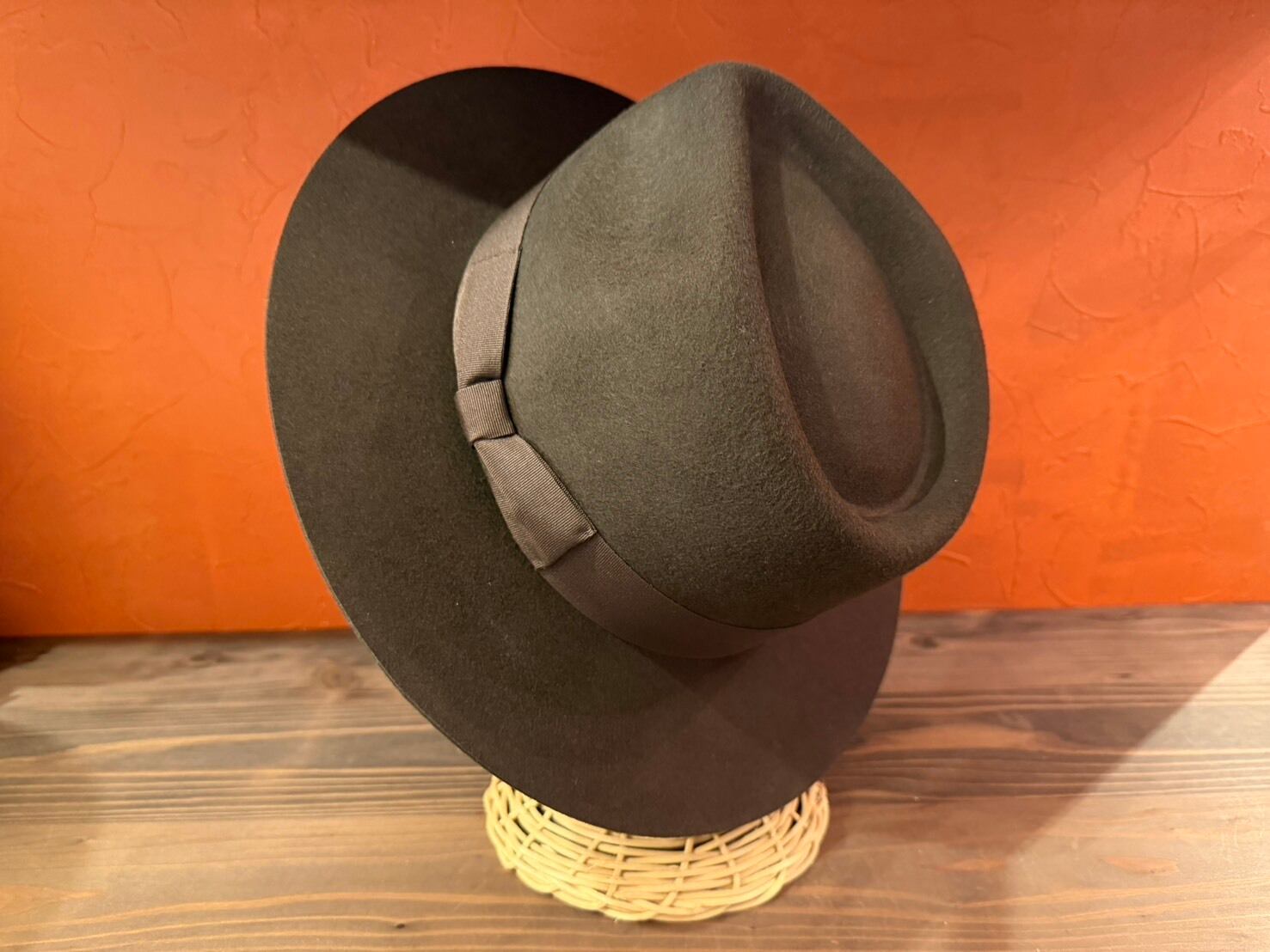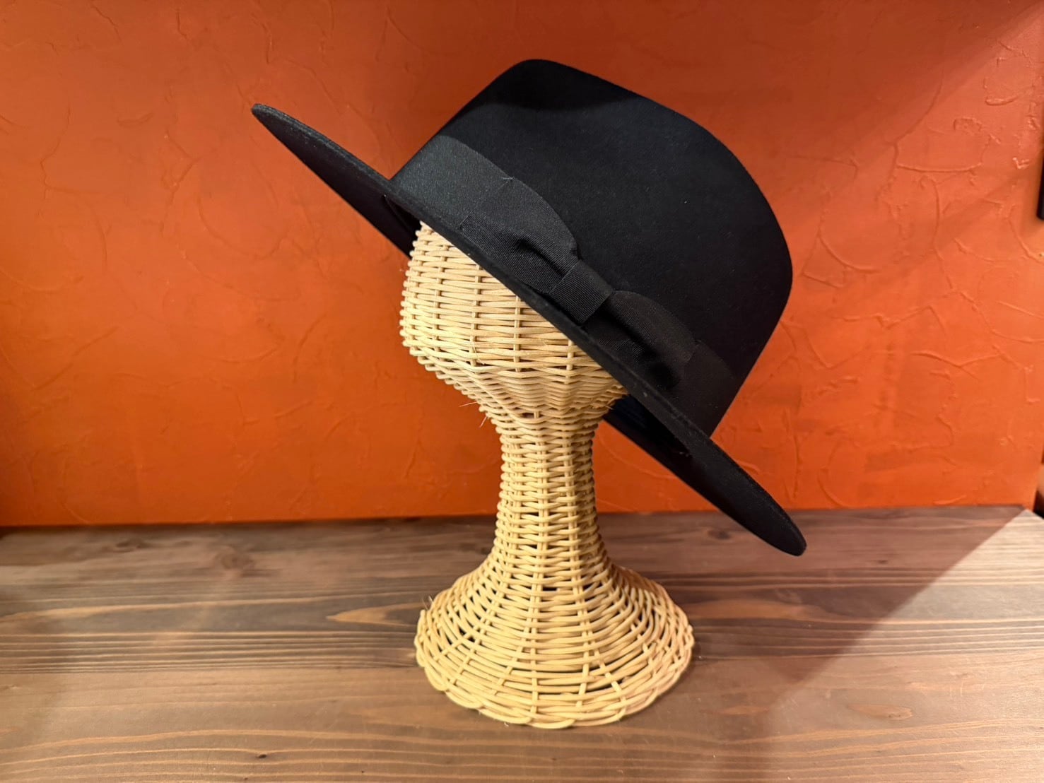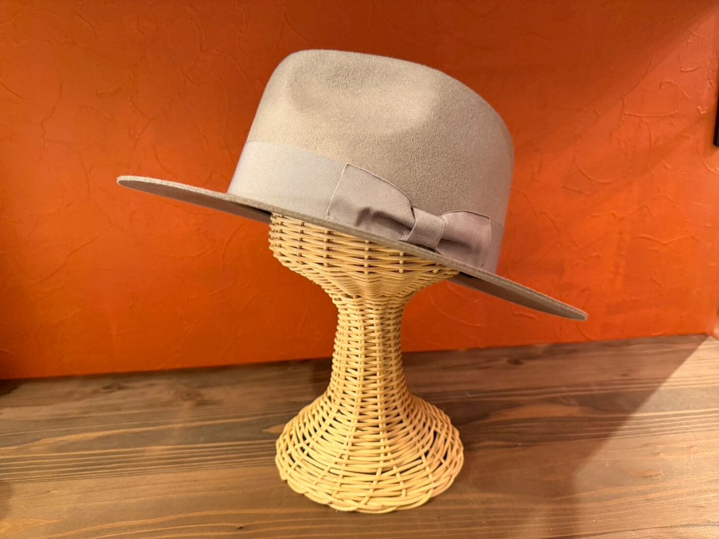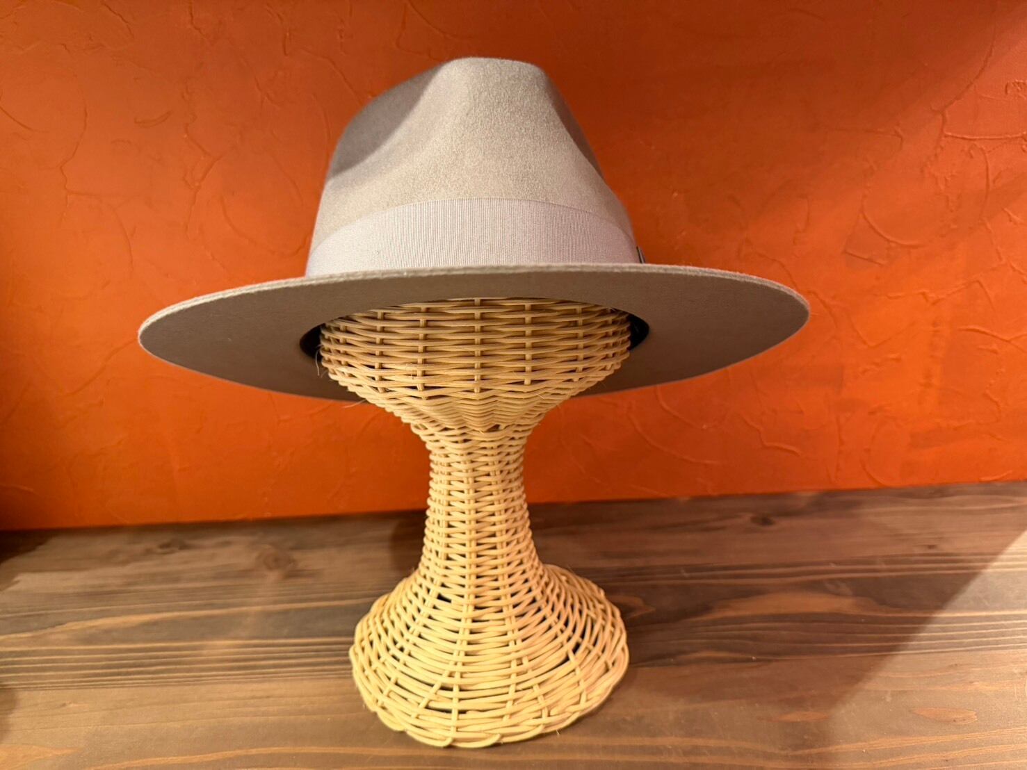 中ツバのフラットブリムが、顔まわりに美しい影をつくり、洗練された印象に。