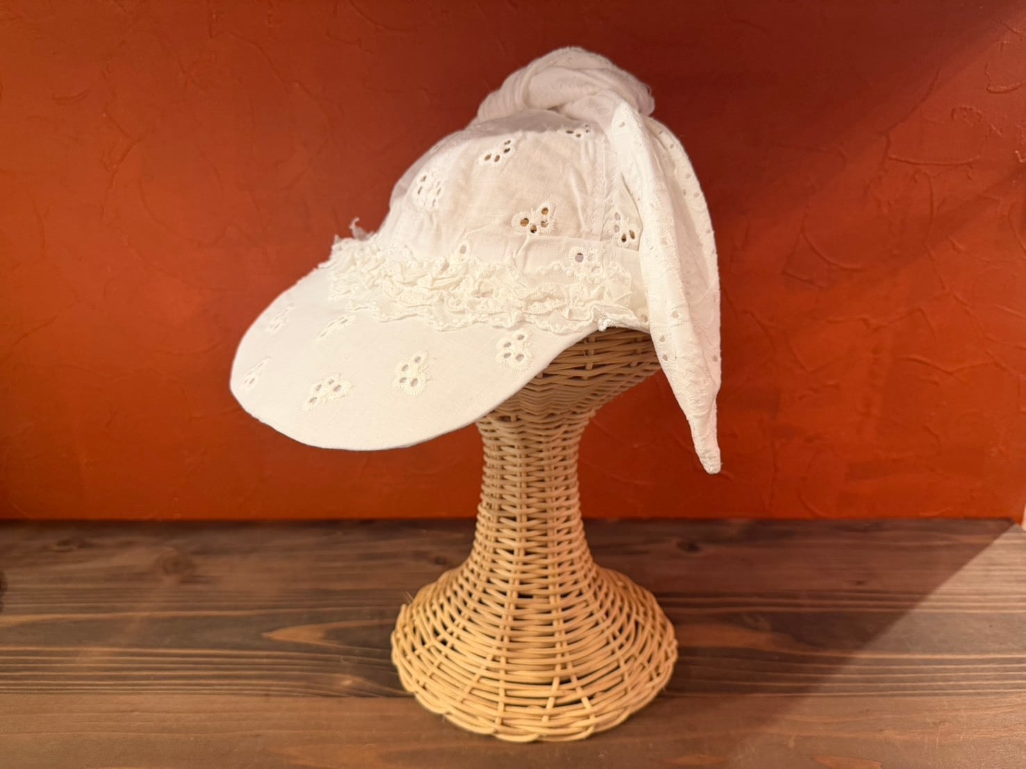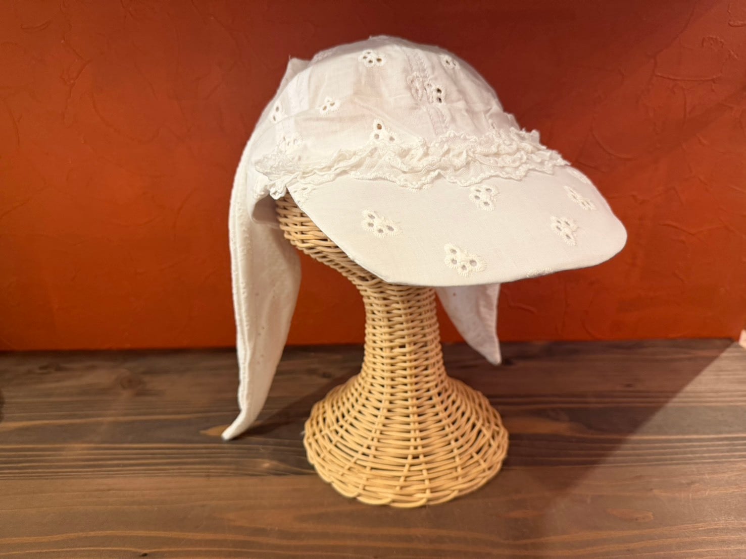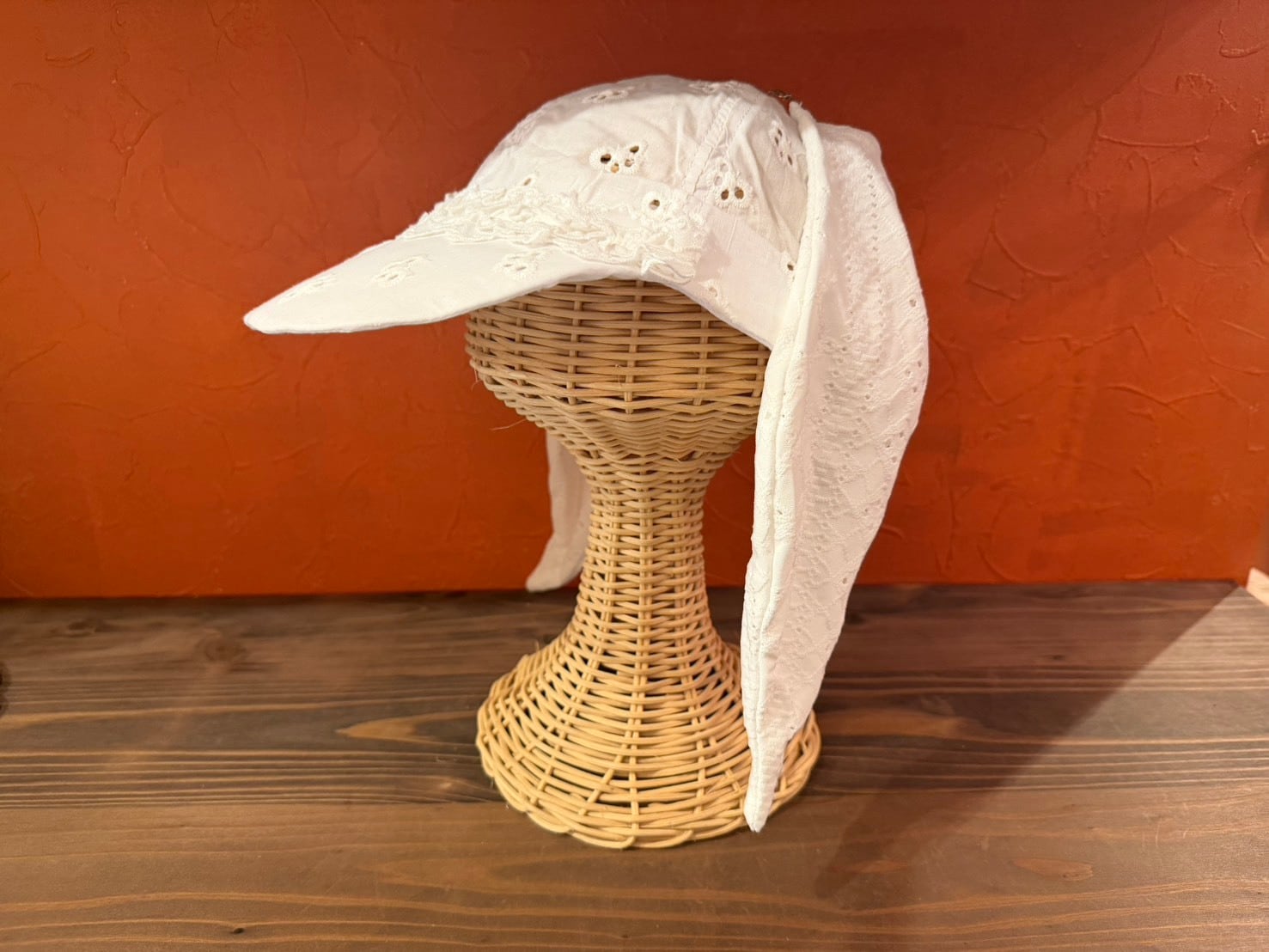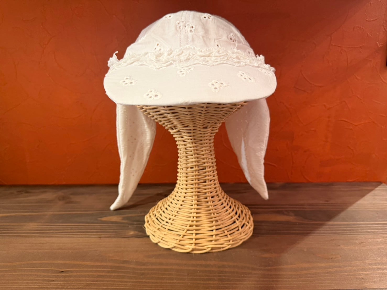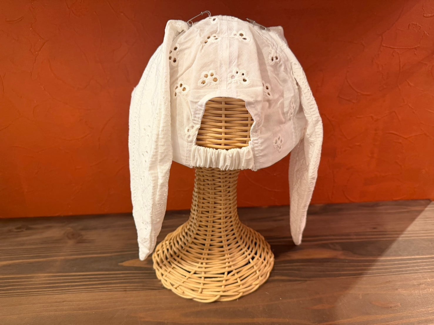うさぎの耳のようなシルエットが印象的なキャップ。